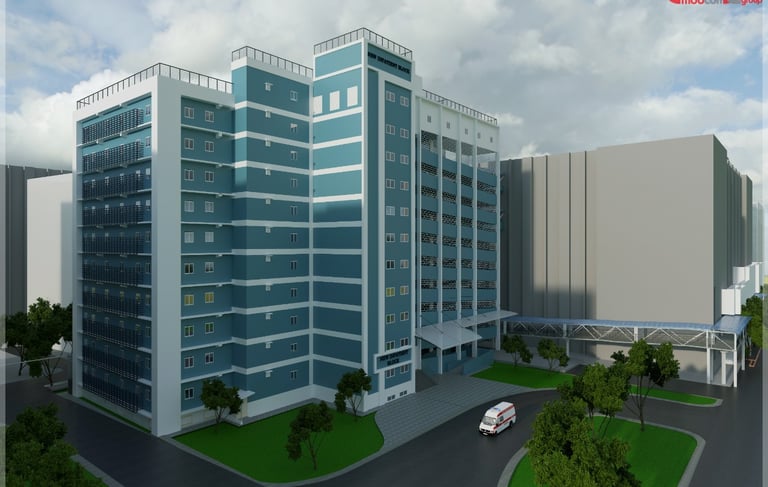 Old residential building converted to Orthopedic block with 11 OTs and 150 beds.